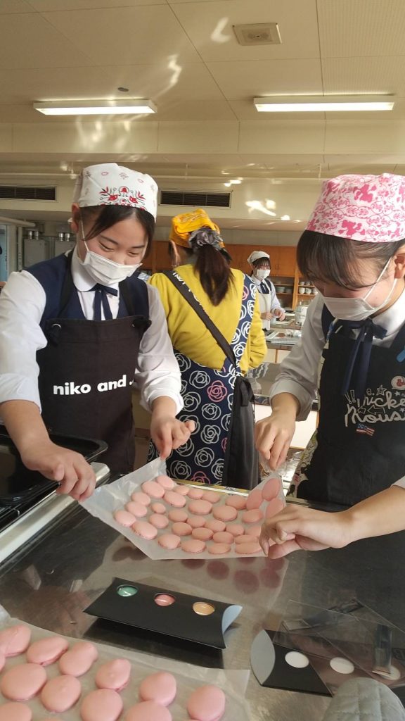 3/8に浜北西高校へ講師派遣をさせていただき、家庭科クラブの皆さんとマカロンを作りました!