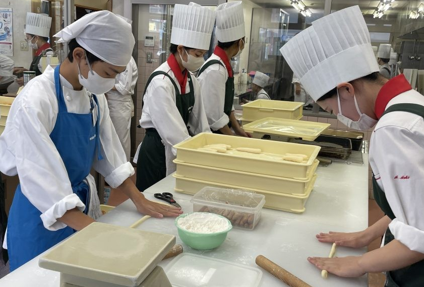 与進中学校の生徒さんが研修レストランで洋菓子・パンの製造体験!