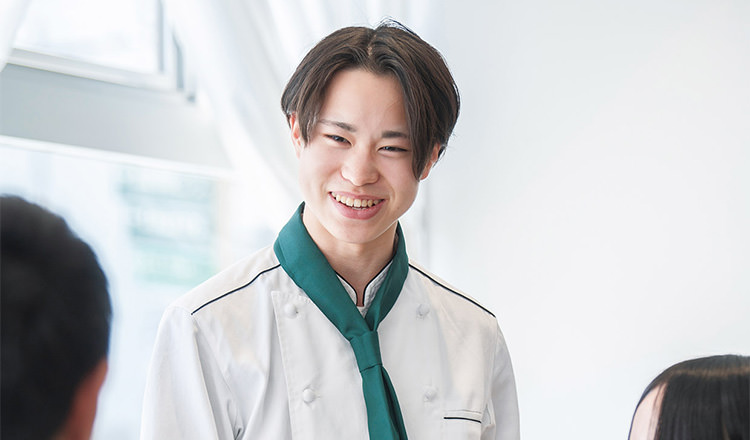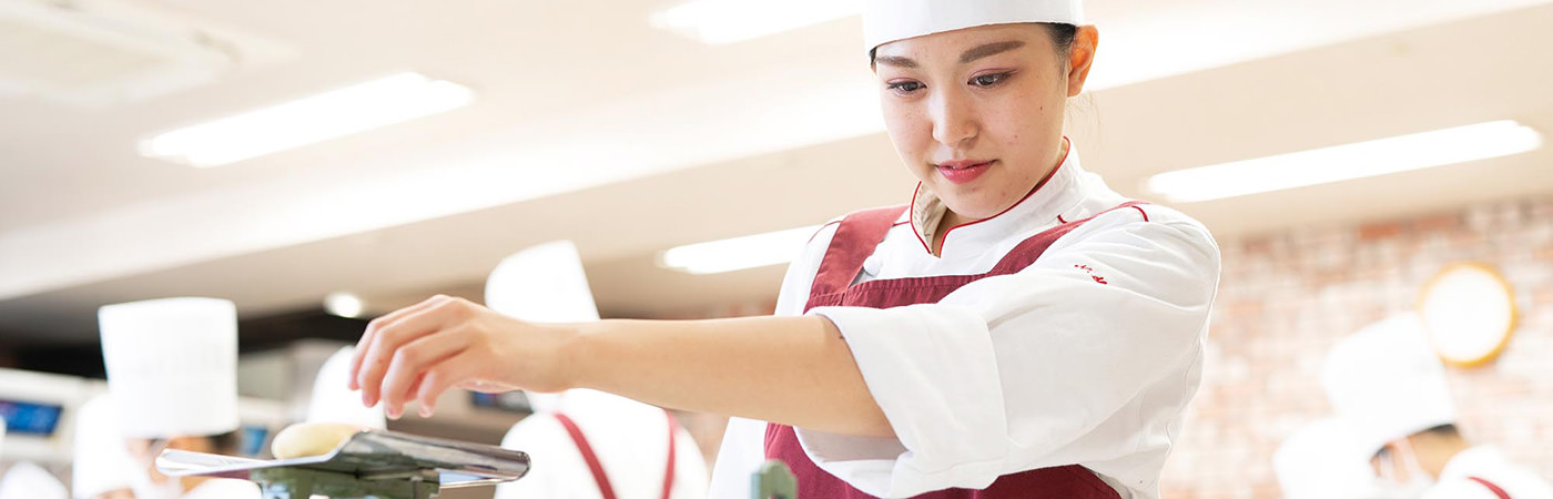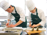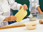 料理もお菓子も、様々な基礎技術の集合体です。その基礎技術を組み合わせることで無限の料理やお菓子が作り出されます。本校では、積み上げ方式の学習方法のもと、反復練習を繰り返しながら、精度の向上とスピードアップを図っていきます。実習室は放課後も開放。学生一人ひとりが、確実に出来るまでサポートしていきます。
