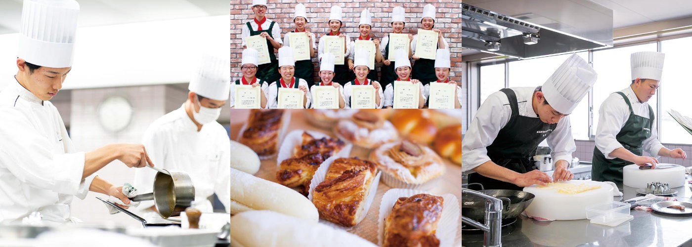 全国の調理師養成施設に通う学生たちが技術を競うコンクール。地区予選を突破した学生が全国大会へ進め、オリジナルレシピの制作で競い合います。本校からは毎年、学内選抜された学生が好成績を収めています。