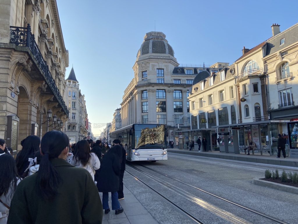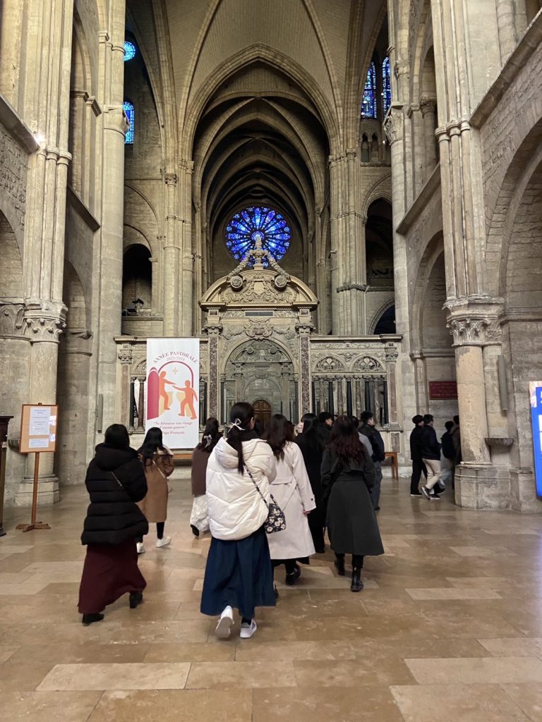 ランスのノートルダム大聖堂(世界遺産)を見学している様子です。