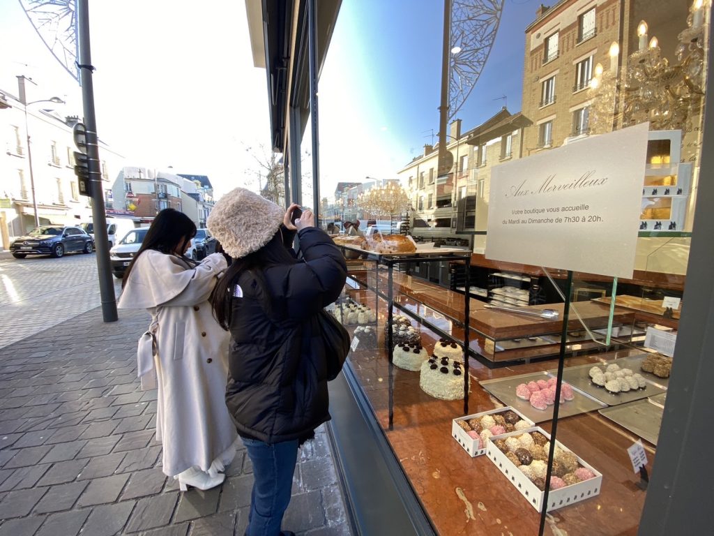 通りかかったパティスリーに吸い込まれるように集まって興味津々なところは、さすが調理・製菓の学生だなと思いました。