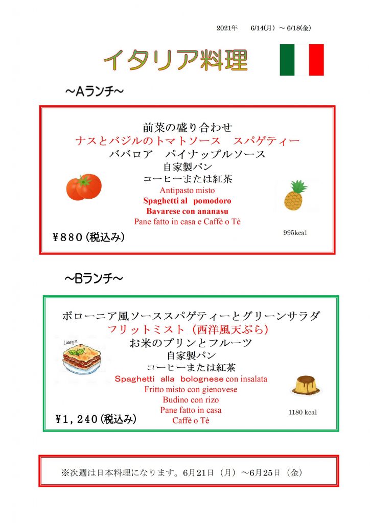 カザリス通信8 6月14日(月)~6月18日(金)のカザリスランチはイタリア料理