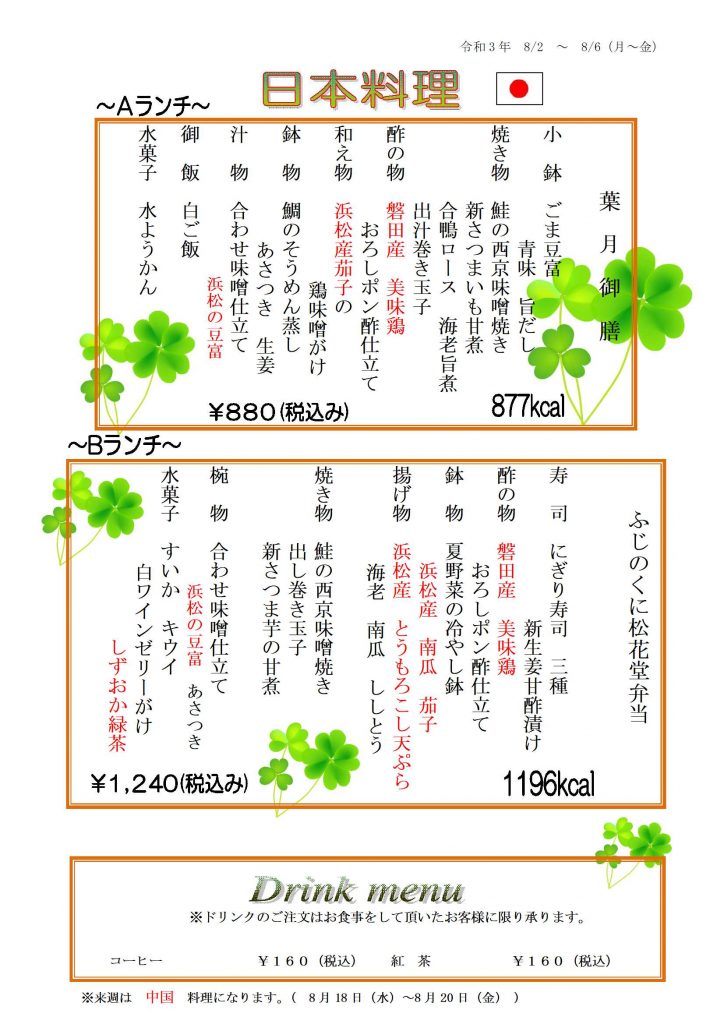 カザリス通信15 8月2日(月)~8月6日(金)のカザリスランチは日本料理