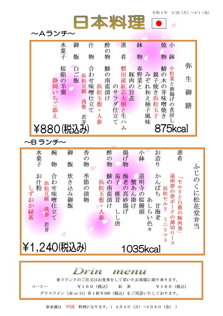 カザリス通信37 3月28日(月)~4月1日(金)のカザリスランチは日本料理