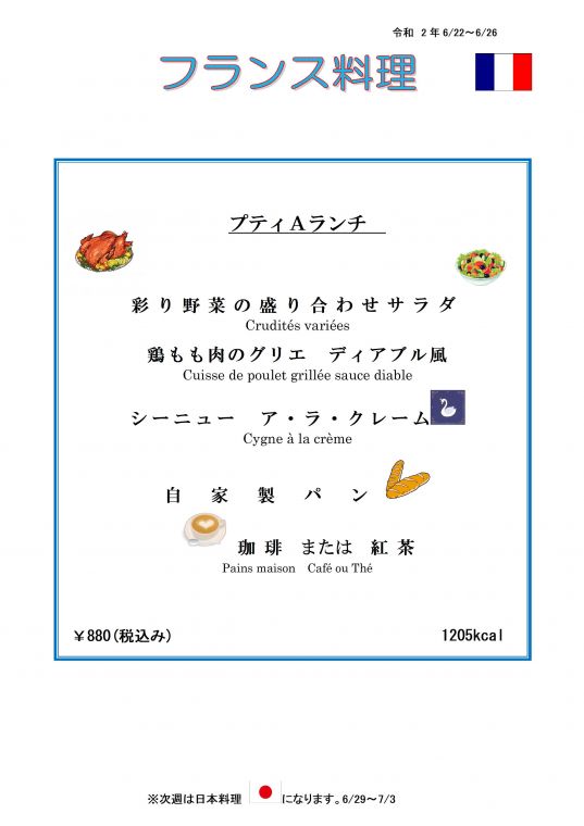 カザリス通信8 6月22(月)~6月26日(金)のカザリスランチはフランス料理
