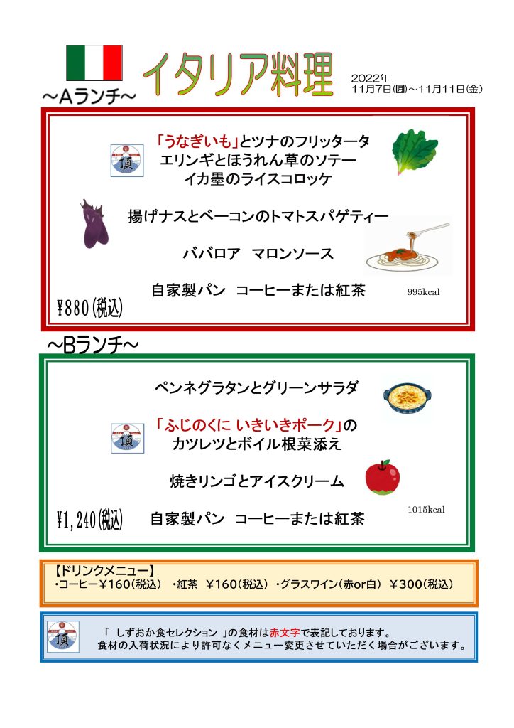 次回(11月14日(月)~18日(金)、20日(日))は、フランス料理です(^^♪