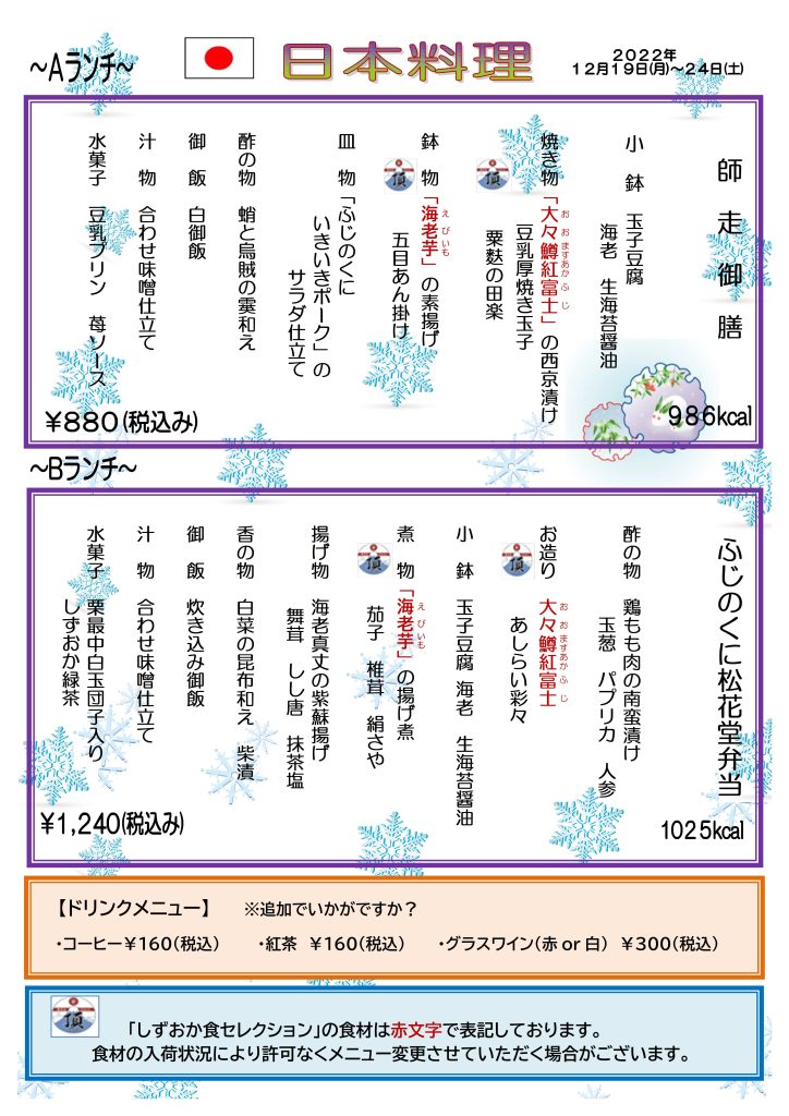 カザリス通信 12月19日(月)~12月24日(土)のカザリスランチは日本料理