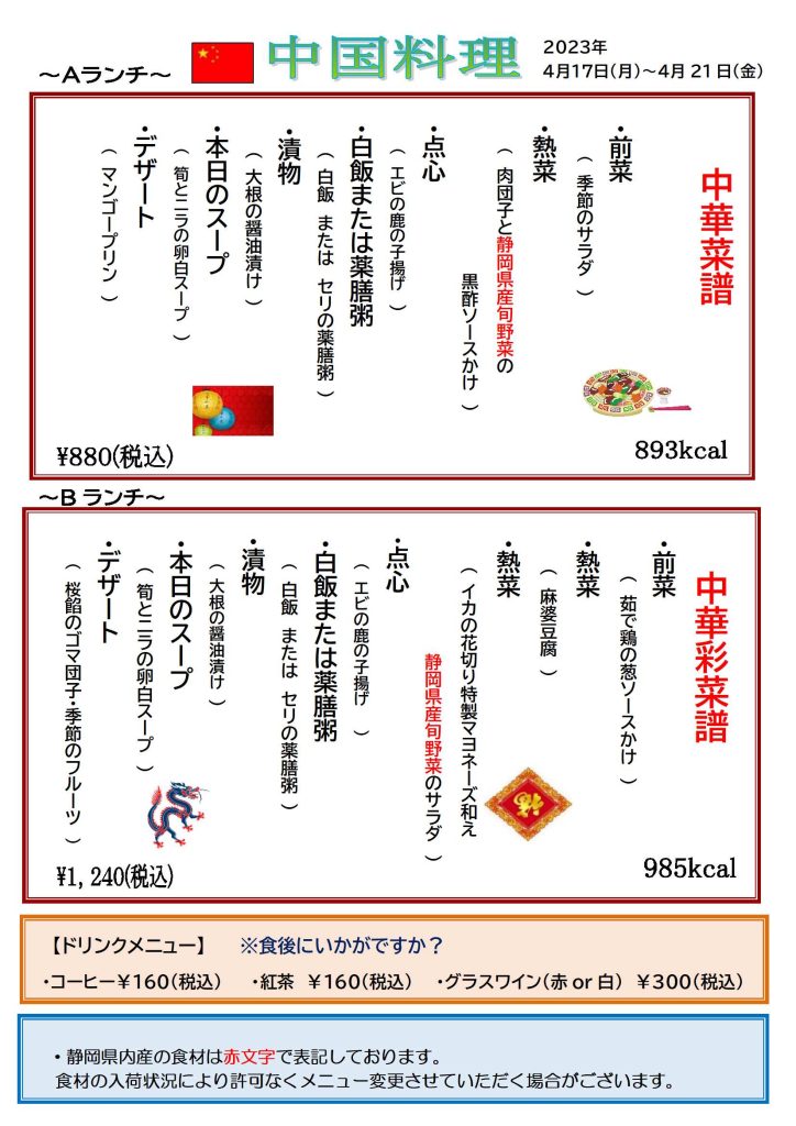 カザリス通信 4月17日(月)~4月21日(金)のカザリスランチは中国料理