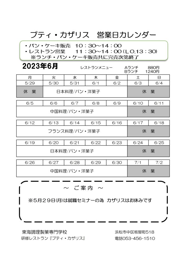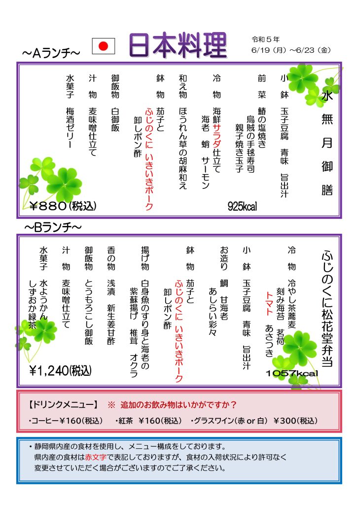 カザリス通信 6月19日(月)~6月23日(金)のカザリスランチは日本料理