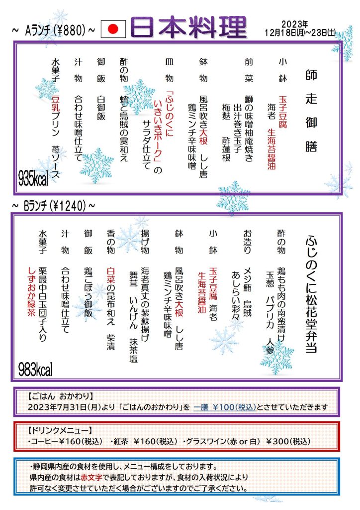 カザリス通信 12月18日(月)~12月23日(土)のカザリスランチは日本料理