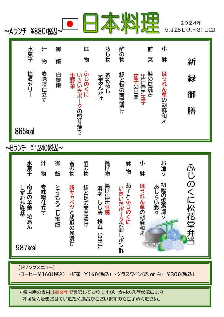 【カザリス通信】5月28日(火)~5月31日(金)のカザリスランチは日本料理