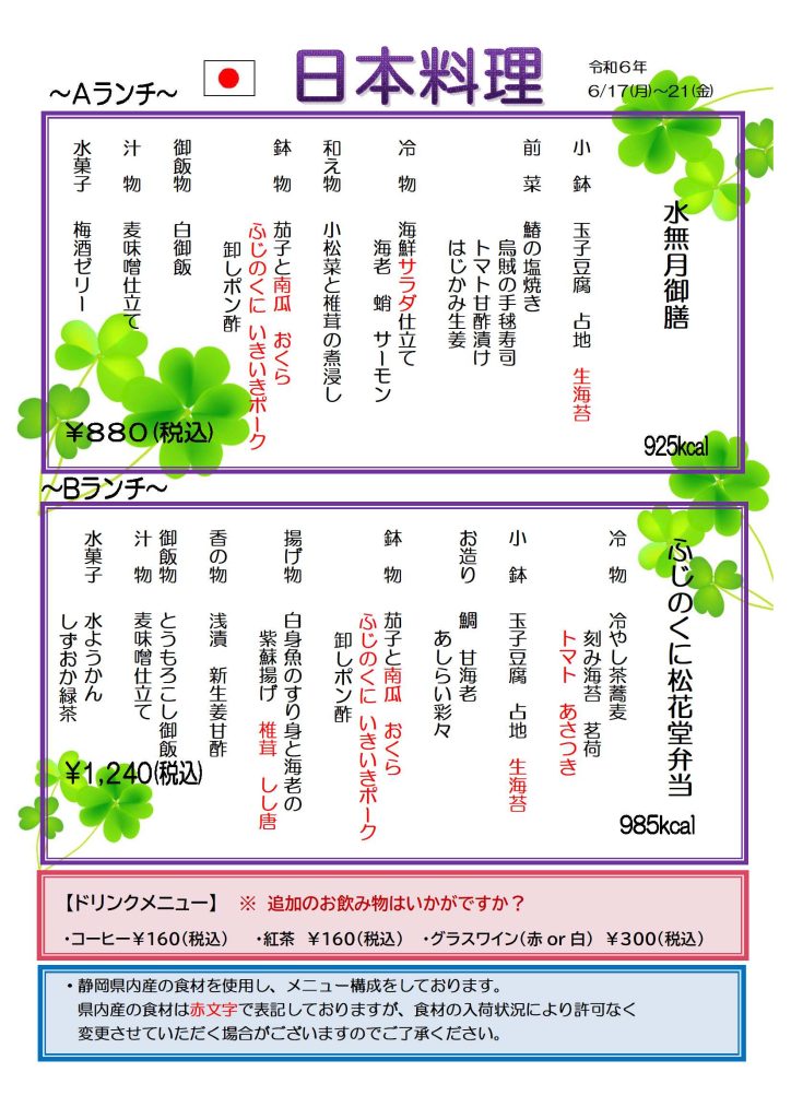 【カザリス通信】6月17日(月)~6月21日(金)のカザリスランチは日本料理
