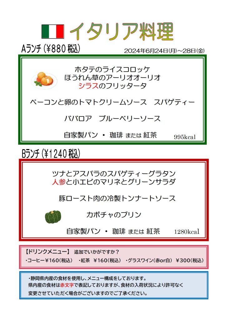 【カザリス通信】6月24日(月)~6月28日(金)のカザリスランチはイタリア料理