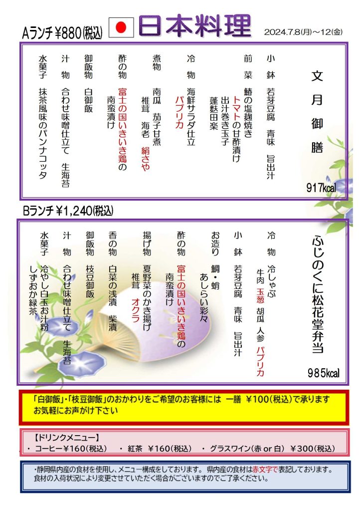 【カザリス通信】7月8日(月)~7月12日(金)のカザリスランチは日本料理