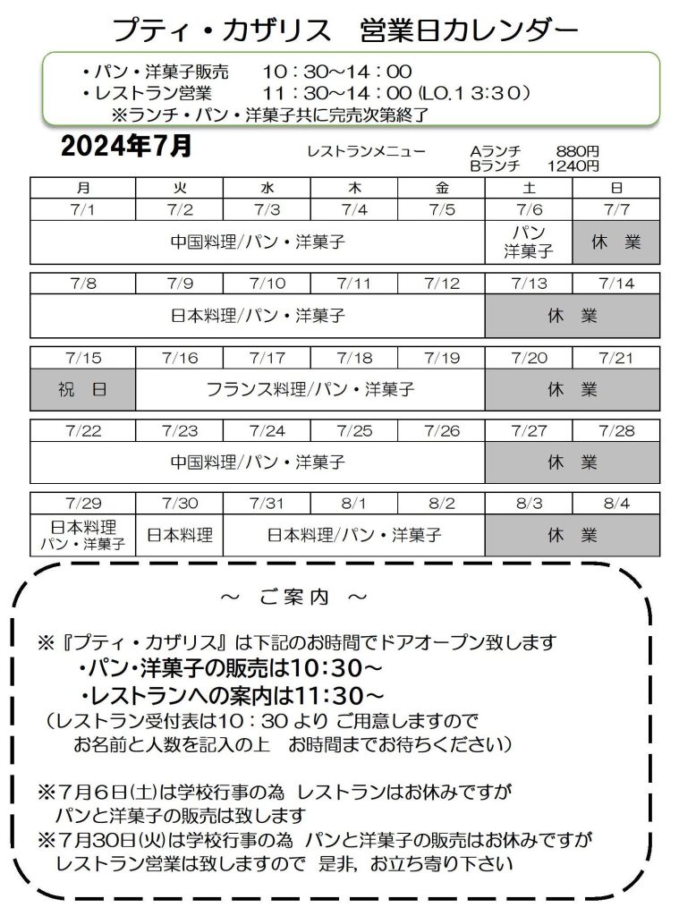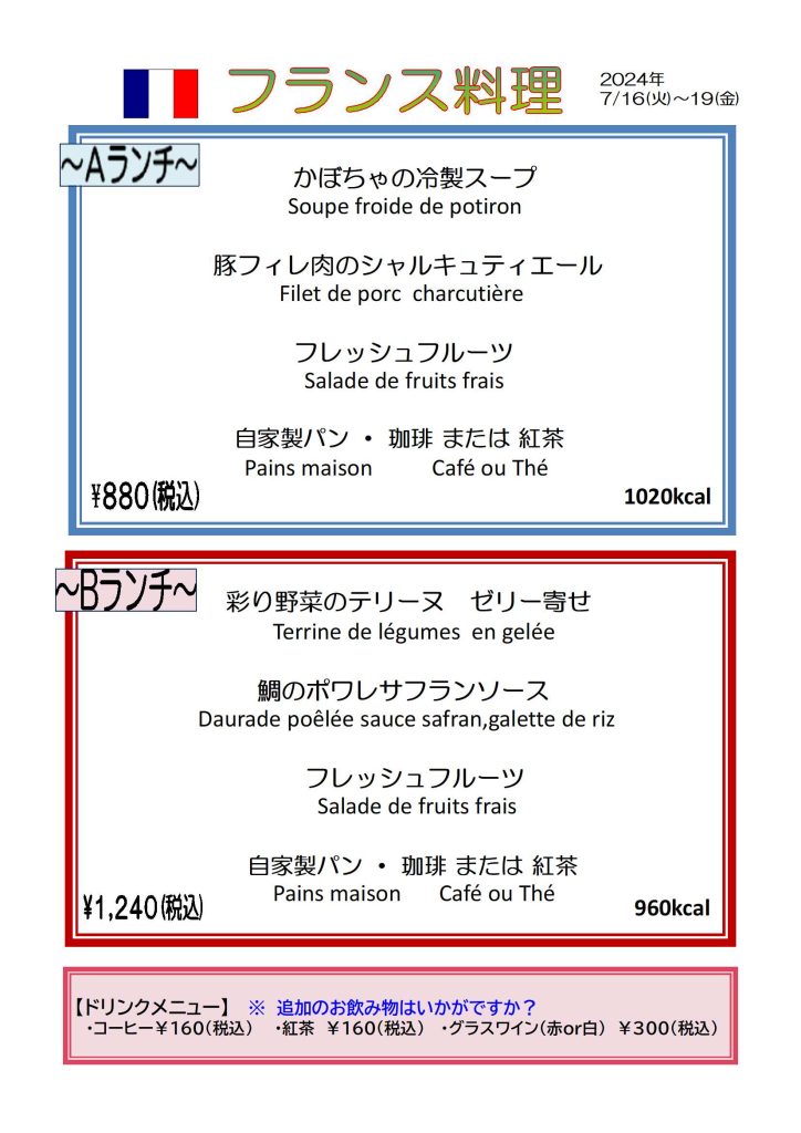 【カザリス通信】7月16日(火)~7月19日(金)のカザリスランチはフランス料理