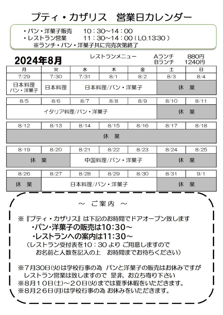 いつも研修レストラン プティ・カザリスを支えて頂き誠にありがとうございます!