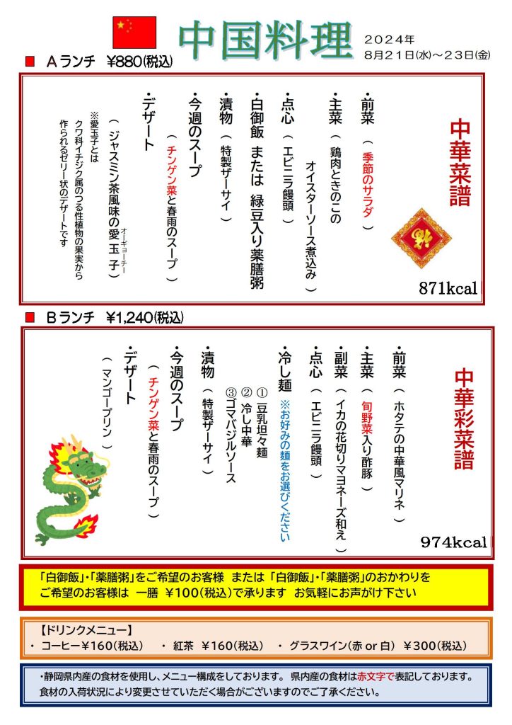 【カザリス通信】8月21日(水)~8月23日(金)のカザリスランチは中国料理