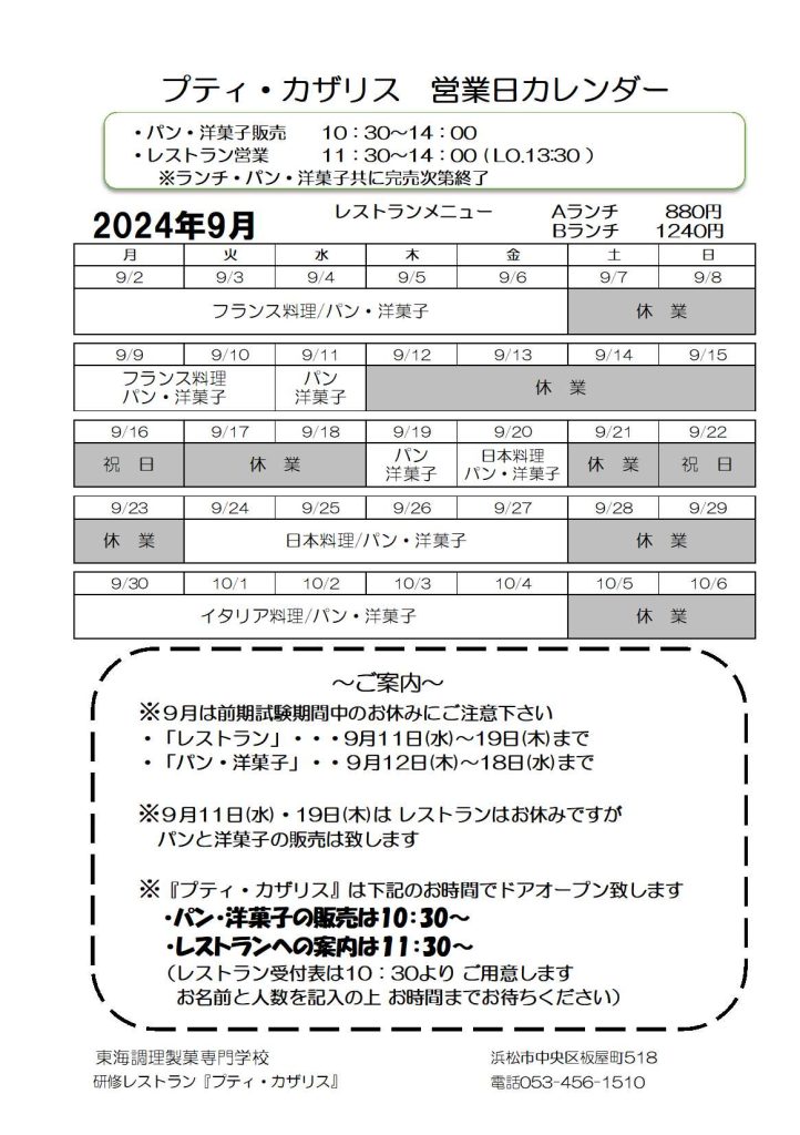 いつも研修レストラン プティ・カザリスを支えて頂き誠にありがとうございます。