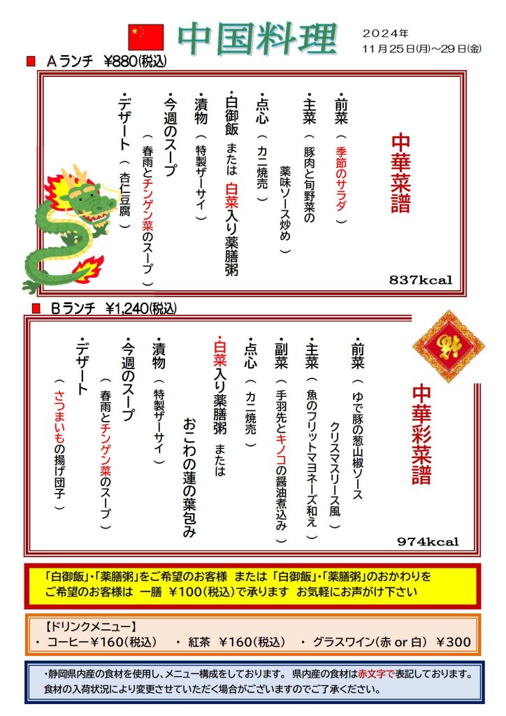 【カザリス通信】11月25日(月)~11月29日(金)のカザリスランチは中国料理