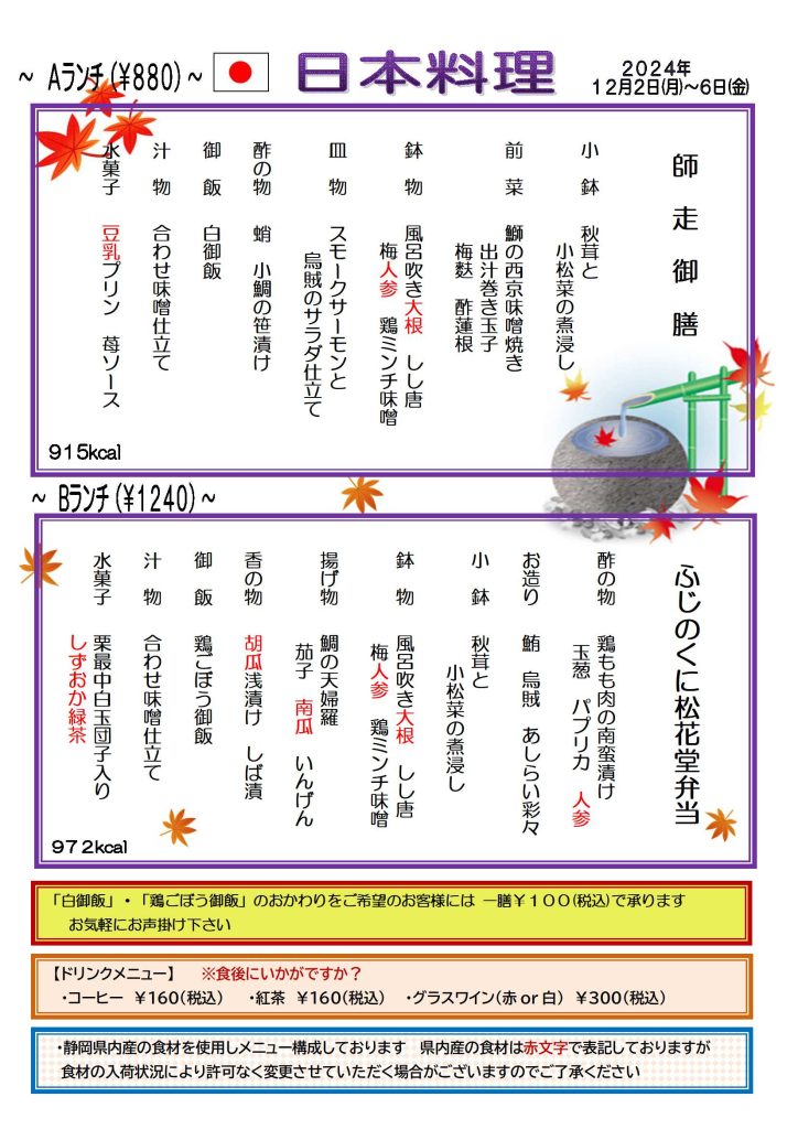 【カザリス通信】12月2日(月)~12月6日(金)のカザリスランチは日本料理