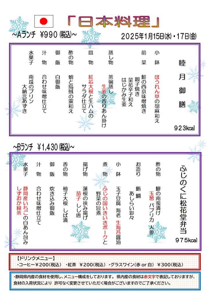 【カザリス通信】1月15日(水)・1月17日(金)のカザリスランチは日本料理