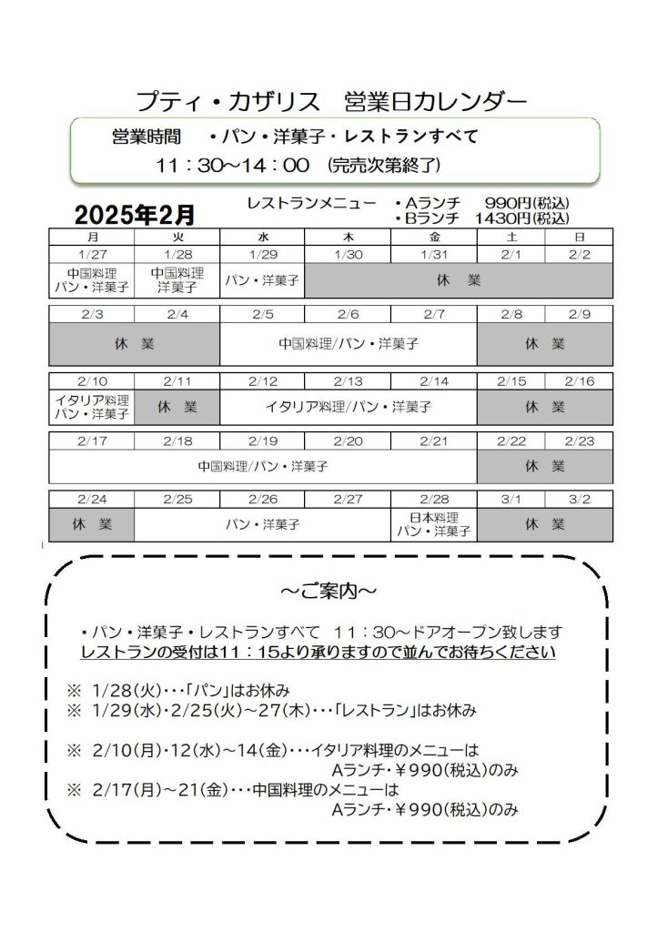 いつも研修レストラン プティ・カザリスを支えて頂き誠にありがとうございます!