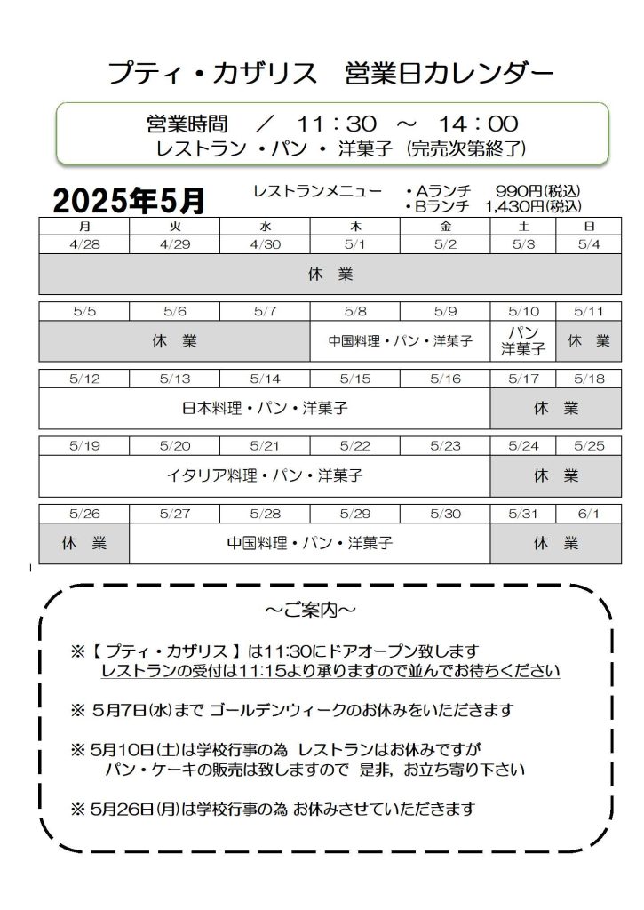 いつも研修レストラン プティ・カザリスを支えて頂き誠にありがとうございます!