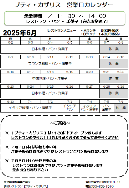 いつも研修レストラン プティ・カザリスを支えて頂き誠にありがとうございます!