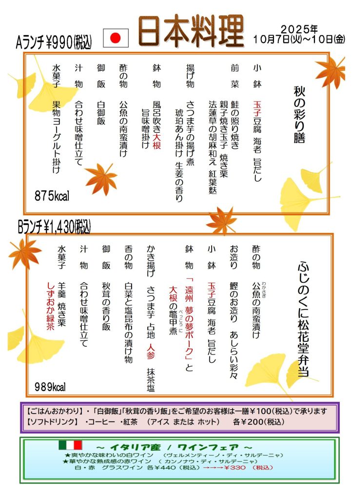 【カザリス通信】10月7日(火)~10月10日(金)のカザリスランチは日本料理
