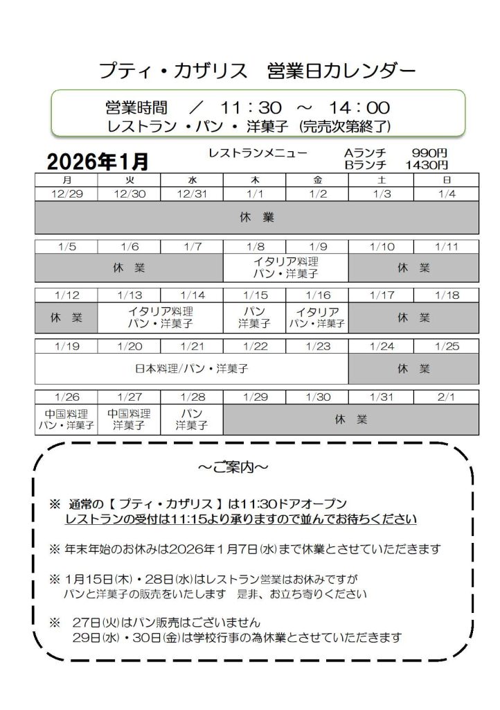 いつも研修レストラン プティ・カザリスを支えて頂き誠にありがとうございます!
