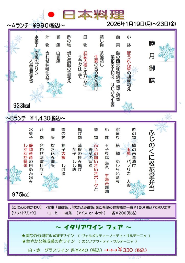 【カザリス通信】1月19日(月)~1月23日(金)のカザリスランチは日本料理