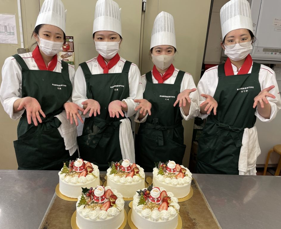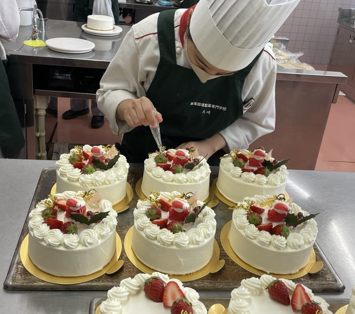 今日はクリスマスイブ✨「プティ・カザリス」でも学生たちがクリスマスケーキを製造中!!