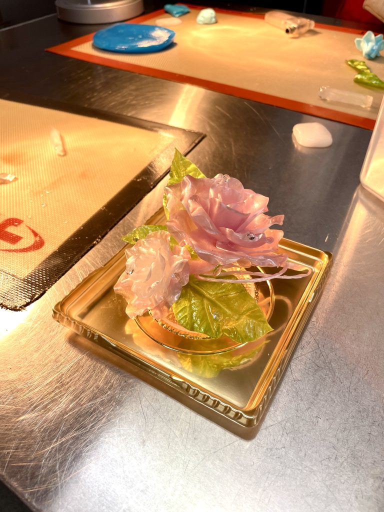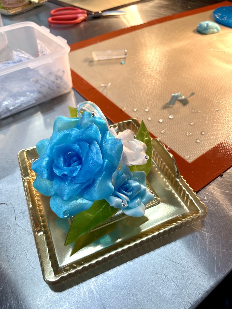 学生たちは飴の扱い方に苦戦しながらも綺麗な作品を完成させました🌹💕