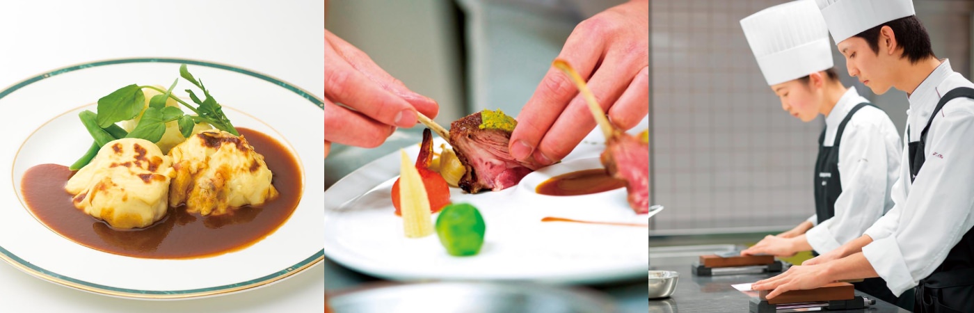 調理技術科は1年次に日本、西洋、中国料理の基礎を学び、各実習を通して、自分がやりたい料理を2年次に選択できます。実習室には各分野で必要な機材や器具が揃っており、専門的に学べて且つ、調理しやすい環境が整っているところに魅力を感じました。学びのなかでは特にフランス人のパスカル先生が印象に残っています。調理法をはじめ、フランス語の調理用語、フランスの文化、各地域の郷土料理なども習い、厳しさとユーモアを交えたメリハリのある授業はとても刺激的でした。就職してもフランス語の勉強は続けたいと思っています。就職指導では私の性格や思いを汲んでくださり、希望する道に進むことができました。