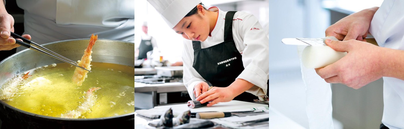 家が海に近いため、祖父とよく魚釣りをして魚料理を食べており、自然と料理人を目指すようになりました。学校では魚と多く触れられる日本料理を専攻。自分では細かい作業に自信がありましたが、先生のデモンストレーションに圧倒。見よう見まねで実践すると、改めて高度な技術であること、そして目の当たりにできることが東海調理のすごさだと実感しました。先生方のテクニックと話のおもしろさにも惹きつけられ、実習時間はあっという間で楽しい思い出しかありません。また、作業一つひとつに意味があることを教わり、接客も学べたことで視野が広がりました。希望の就職先でさらに自分を成長させたいと思っています。