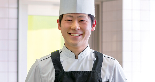海外に興味があり、自国の文化を外国の方に伝えられるよう日本料理を選びました。田中先生の授業はテンション高め。笑いが多く、楽しく学べました。カザリス実習ではキッチンとホールを経験し、お客さまと 距離が近い接客が自分に向いていると思いました。就職先は海外のお客さまが多いお店なので、これから英会話の勉強も頑張ります。