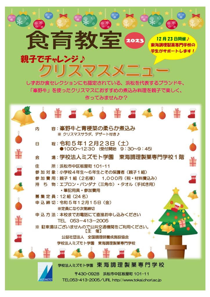 12月23日(土)に開催される食育教室の申し込み受付中です。