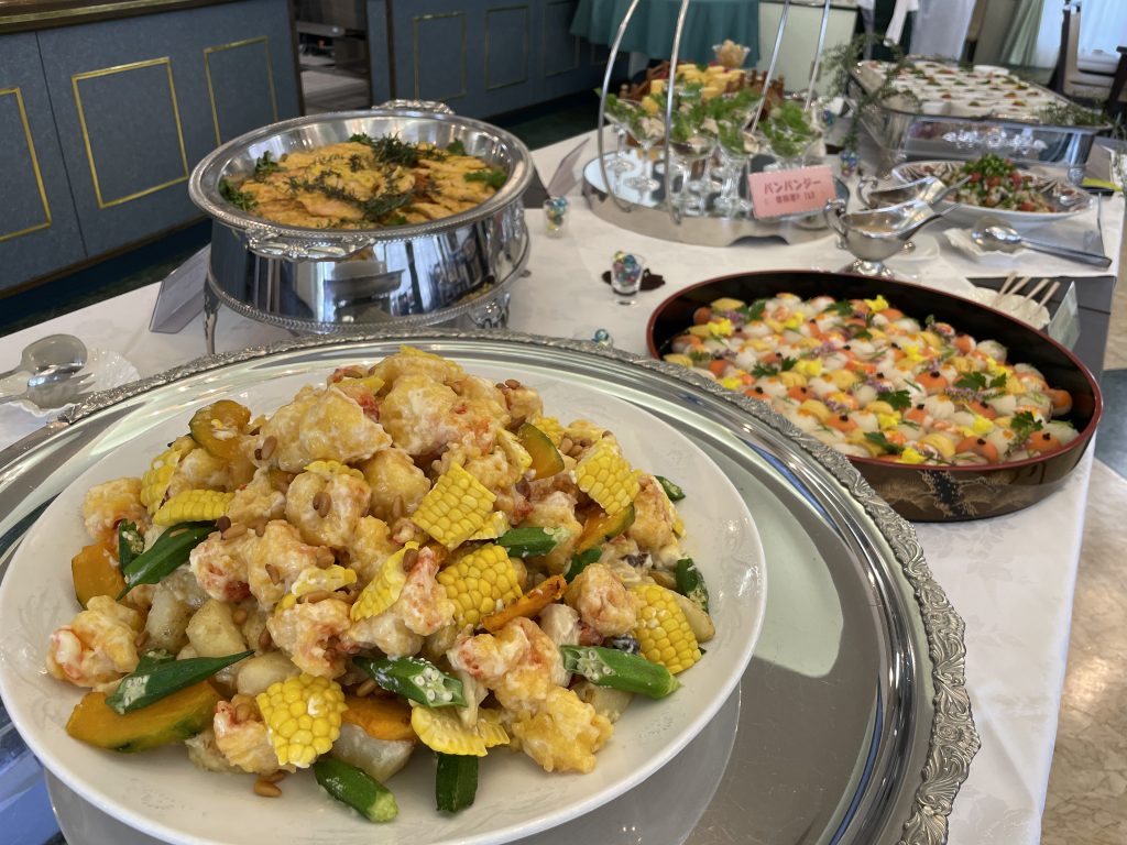 調理はイタリア料理がエスギャロップと冷製カッペリーニ、中国料理が海老マヨとバンバンジー
