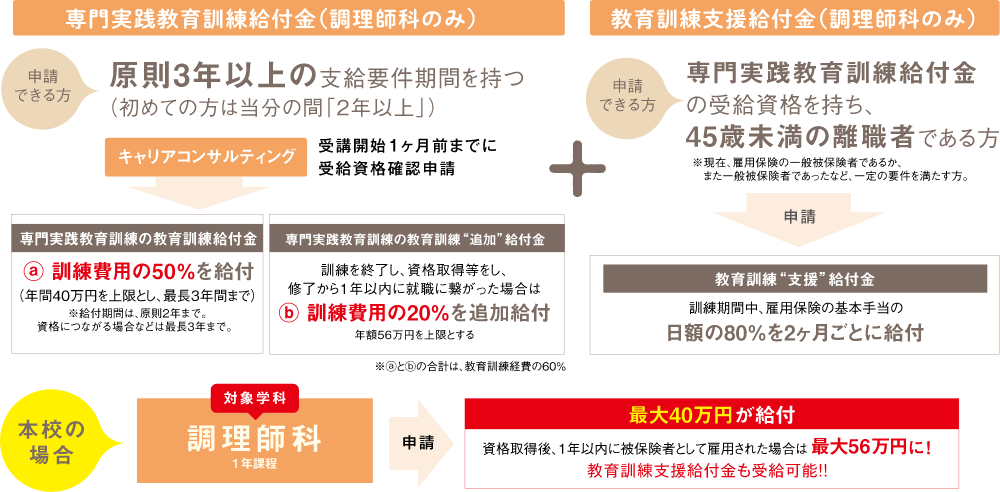 ミズモト学園 東海調理製菓専門学校 調理師科(1年コース)が、専門実践教育訓練の対象講座に指定されました。